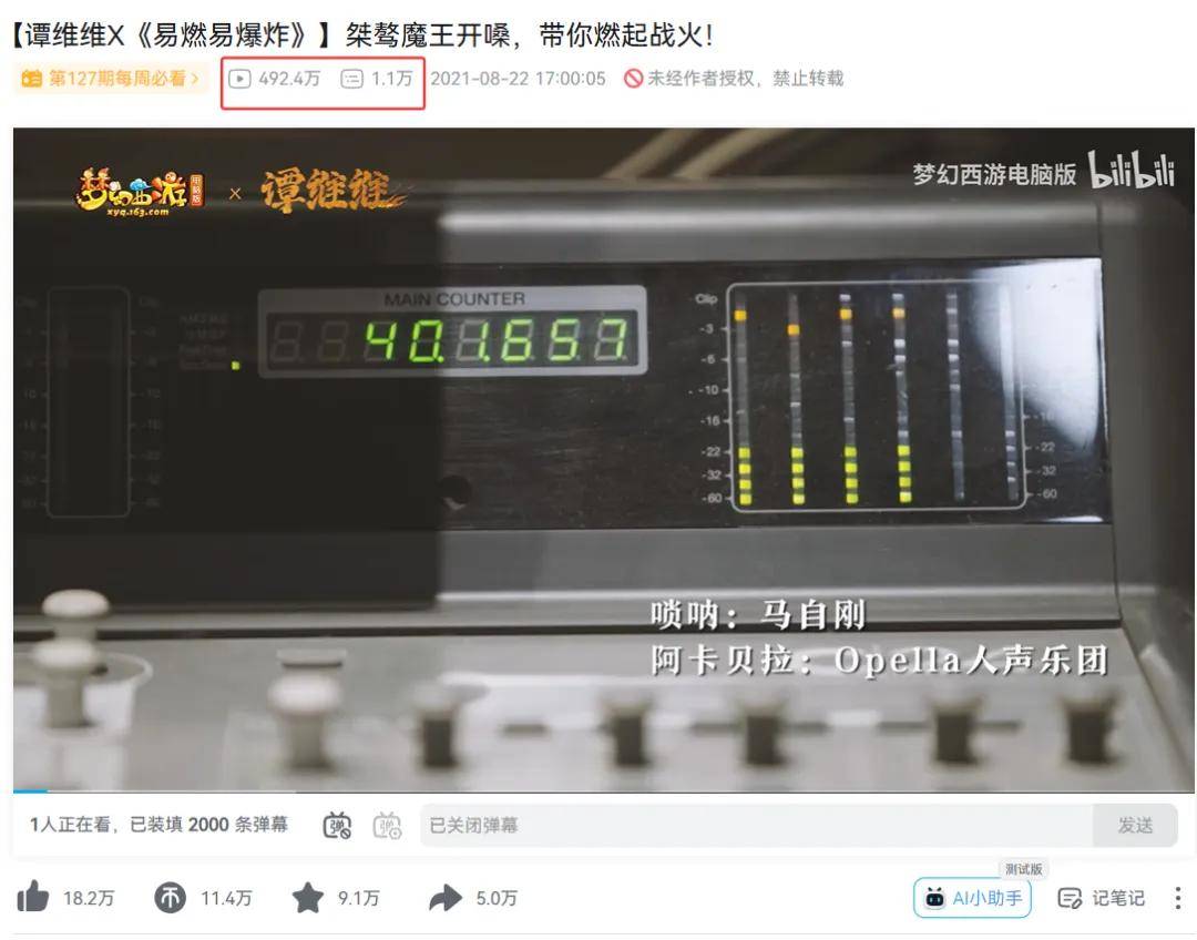 2021年,《梦幻西游》电脑版邀请了谭维维与唢呐非遗文化传承人马自刚老师,联合演绎了魔王寨门派曲《易燃易爆炸》,碰撞出了新中国式的民族摇滚形式,让更多玩家感受到了唢呐的炽热与张力。