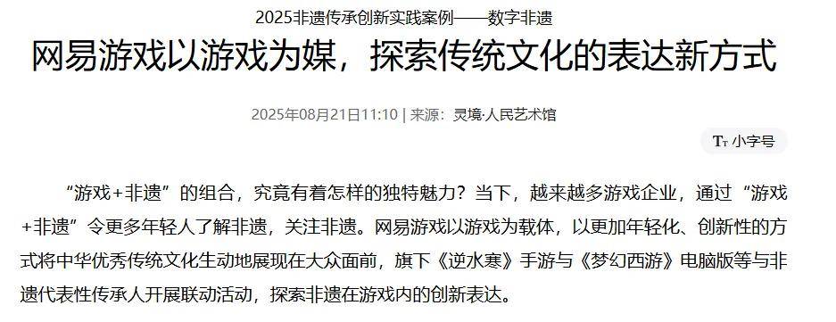 更值得一提的是,8月21日,《梦幻西游》电脑版还获得了“人民网”发文点赞,称赞其以游戏为媒,探索传统文化的表达新方式。