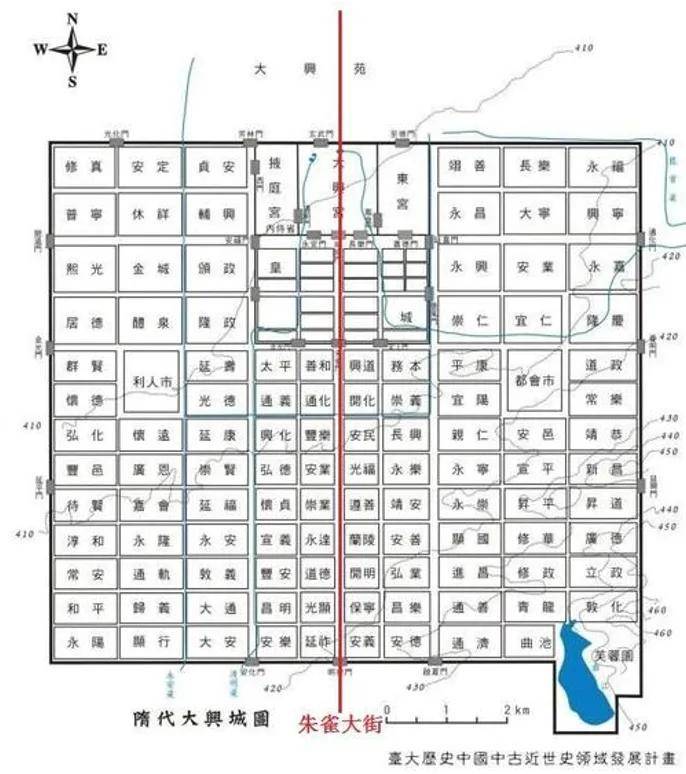 进城后宽阔笔直,直通皇宫的中轴街道,与唐朝长安城著名的“朱雀大街”相呼应。