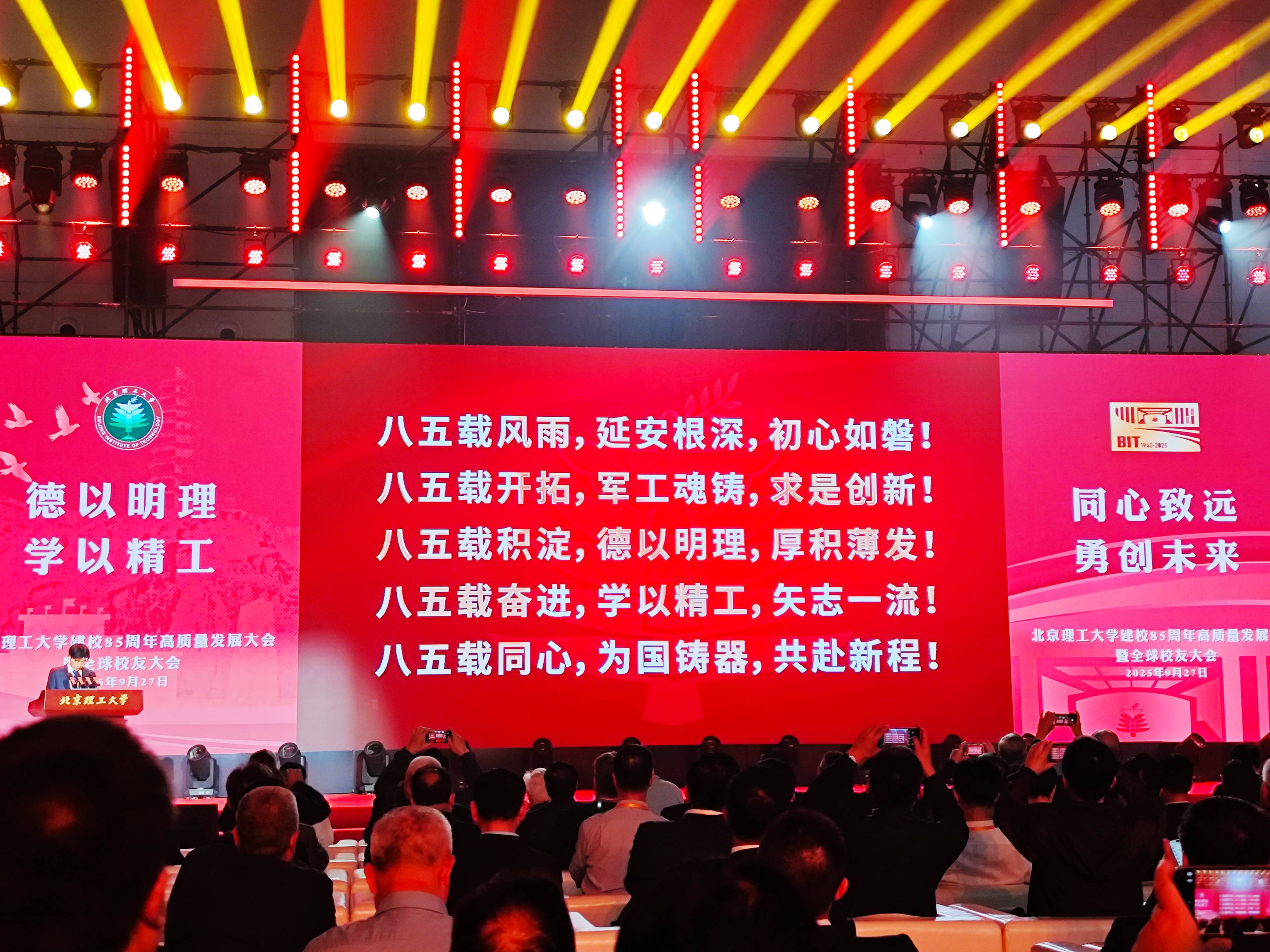 在激昂的校歌声中,北京理工大学建校 85 周年高质量发展大会暨全球校友大会圆满结束。这场盛会不是终点,而是北理工迈向世界一流大学的新起点 ——85 载的奋斗,为学校积累了深厚的底蕴;全球校友的支持,为学校注入了强大的动力;国家的战略需求,为学校指明了前进的方向。