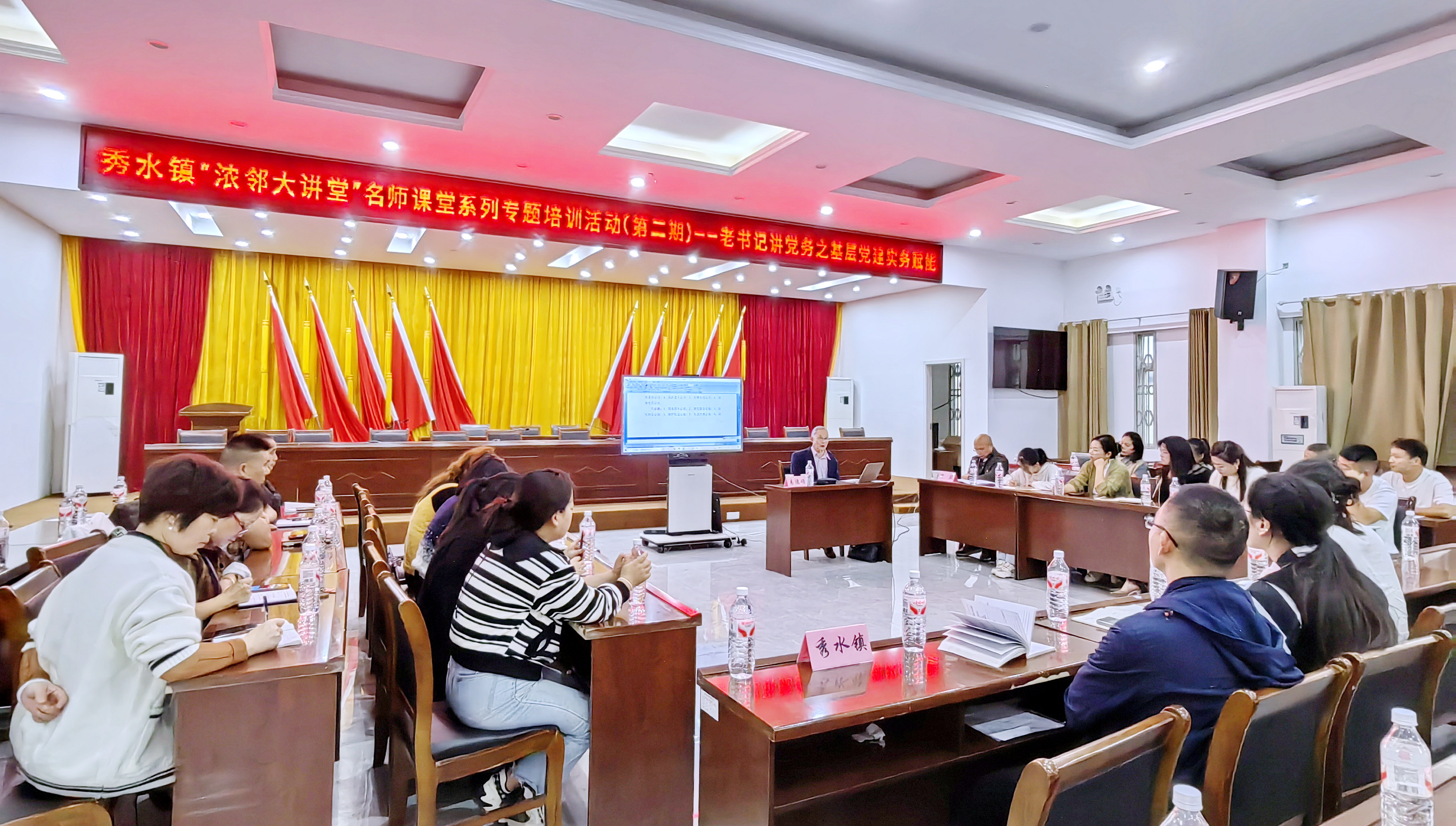 近日,一场聚焦基层党建与治理能力提升的专题培训在四川绵阳市安州区秀水镇举行。在中共安州区委社会工作部、秀水镇党委政府指导下,绵阳市游仙区尚善社会工作服务中心依托“毓秀・浓邻”品牌项目,联合秀水镇锦龙社区党总支部,成功举办了“浓邻大讲堂”第二期“名师课堂”活动。本次活动以“老书记讲党务”为主题,吸引了来自秀水、河清、桑枣三镇的50余名村(社区)“两委”干部参与。