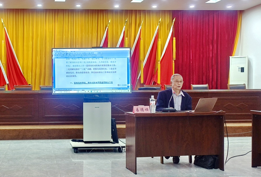 培训中,易德顺摒弃传统说教,采用社工特有的“问题导入—案例拆解—方法提炼”教学法,围绕“党建引领群众工作的底层逻辑与实践路径”进行深度分享。他重点阐述了厘清党和人民群众核心关系的重要性,详细讲解了运用“三降五心”工作法搭建协商平台、将“问题清单”转化为“幸福账单”的实用路径,并强调了发挥党员先锋作用和常态化开展红色教育的具体方法,为在场干部提供了扎实的工作指引。