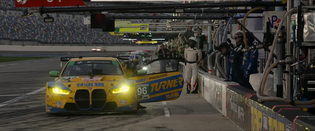 360km/h 的极速在 IMAX 镜头下被拆解为无数清晰的空气动力学细节。赛车尾翼震颤的幅度,仿佛在诉说着空气的力量;赛车进站时 3 秒换胎的机械交响,各种工具的碰撞声、轮胎的更换声交织在一起,构成了一首紧张而又刺激的交响曲。观众仿佛置身于赛道之上,与赛车手一同感受着速度的魅力,体验着 “比真实更震撼” 的沉浸式观影感受。