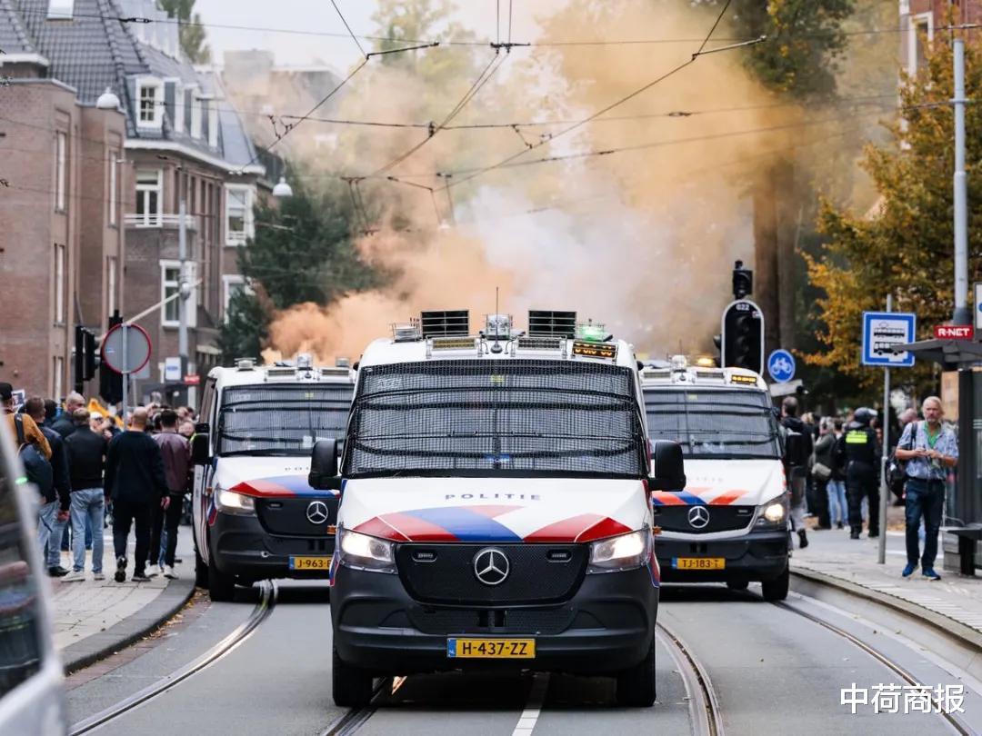 三周前海牙抗议亦失控三周前,海牙的反移民示威也演变成暴力冲突。在马利维尔德(Malieveld)及周边地区,骚乱者与警方对峙数小时,投掷石块、玻璃与路障。数辆警车被焚毁,多名记者受伤,警方拘捕了数十人。