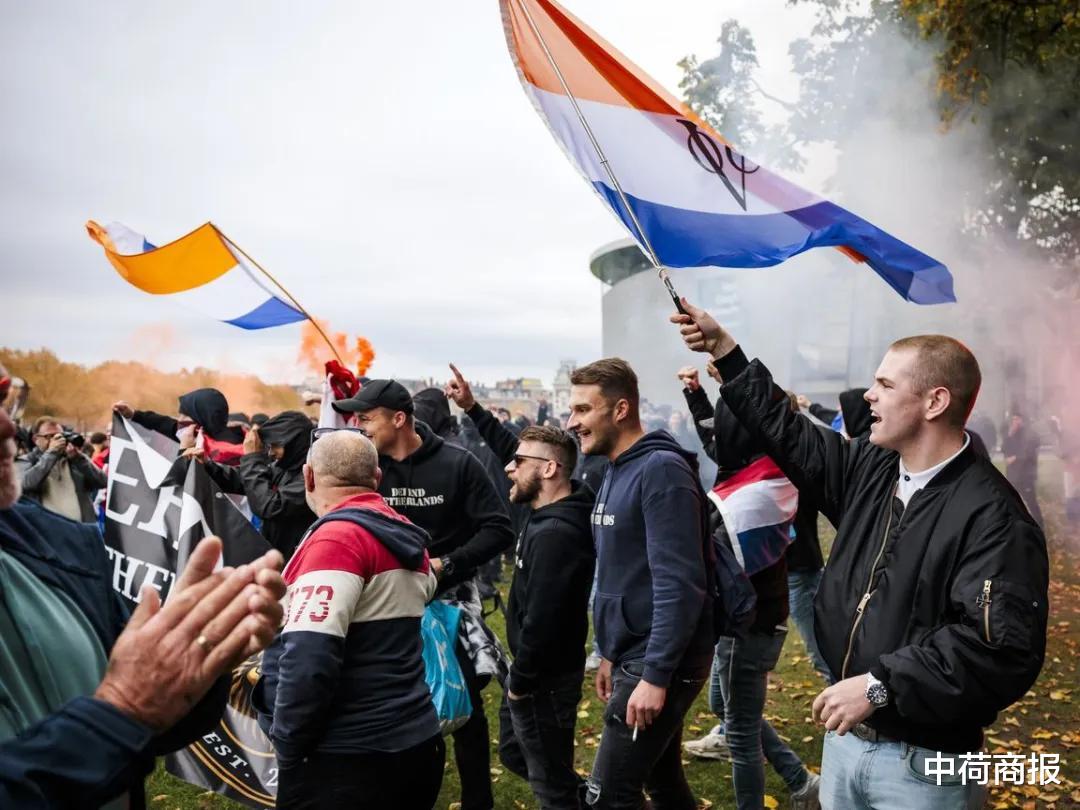 在反移民抗议中,现场出现了大量荷兰国旗,还有部分人举着王子旗(Prinsenvlag)——这种橙白蓝三色旗曾被荷兰纳粹党(NSB)使用,如今仍被视为极右翼象征。游行队伍中有人高喊口号:“我们是荷兰!”以及“驱逐难民中心(AZC)!”。