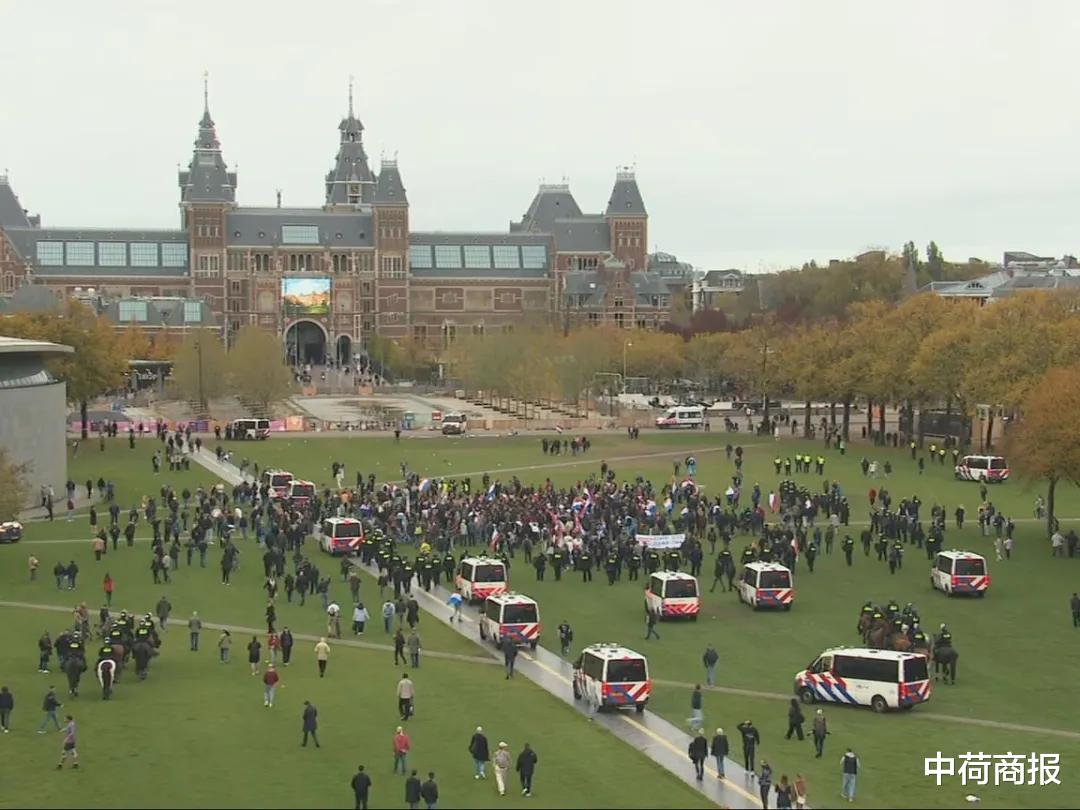 当天中午早些时候,大约有几百名抗议者聚集在阿姆斯特丹的博物馆广场(Museumplein),随后开始在市区游行,途中有更多人加入。警方在现场大规模部署了骑警、警犬、水炮车,防暴警察(ME)也随时待命。