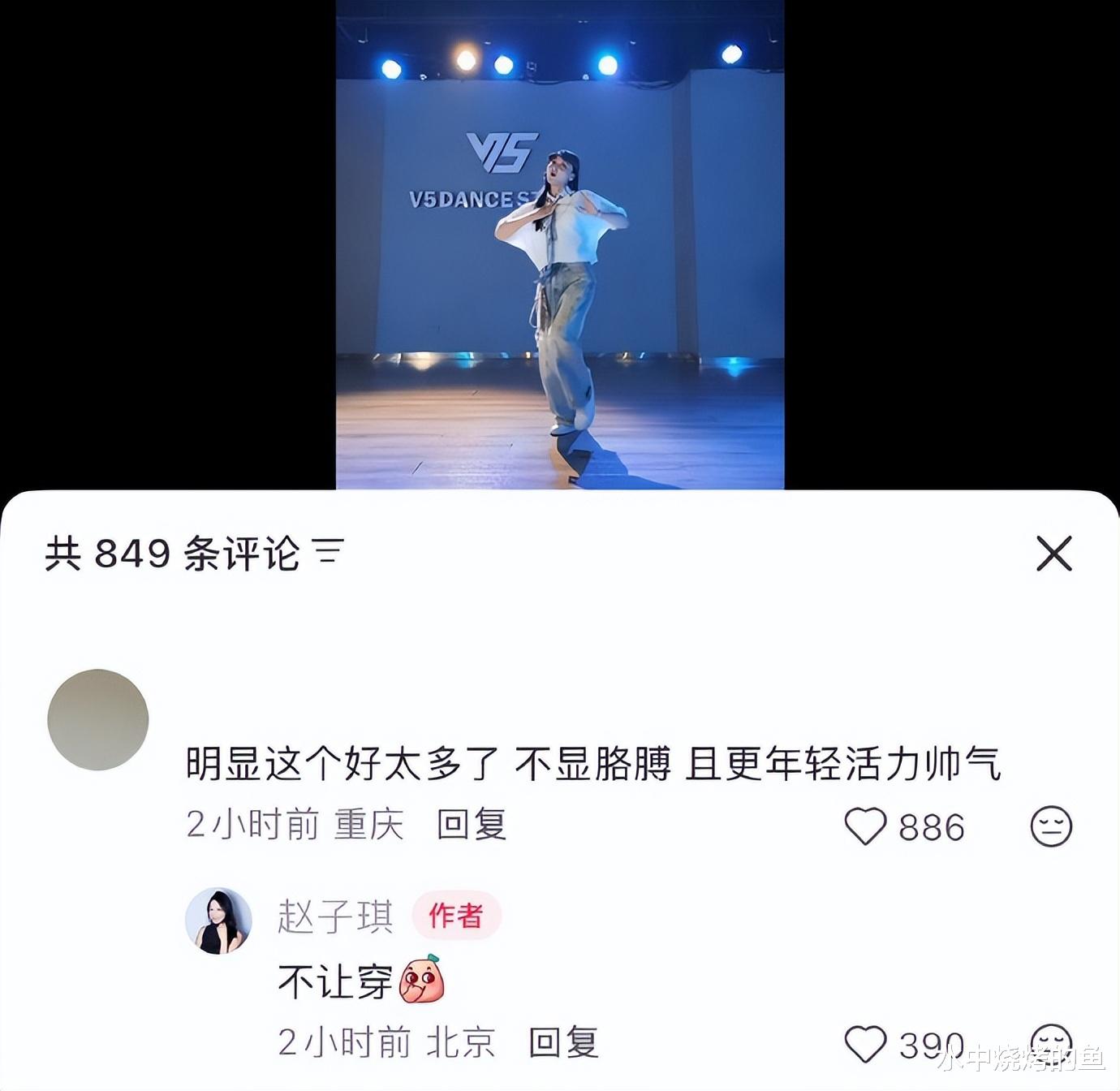 赵子琪晒出了自己练习舞蹈的视频,网友夸这一身穿搭好看,比初舞台的要好很多。赵子琪则回答“不让穿”。网友直言她初舞台的画面切得乱七八糟,她表示确实切得很碎,当时以为是自己跳得不好节目故意切细碎。