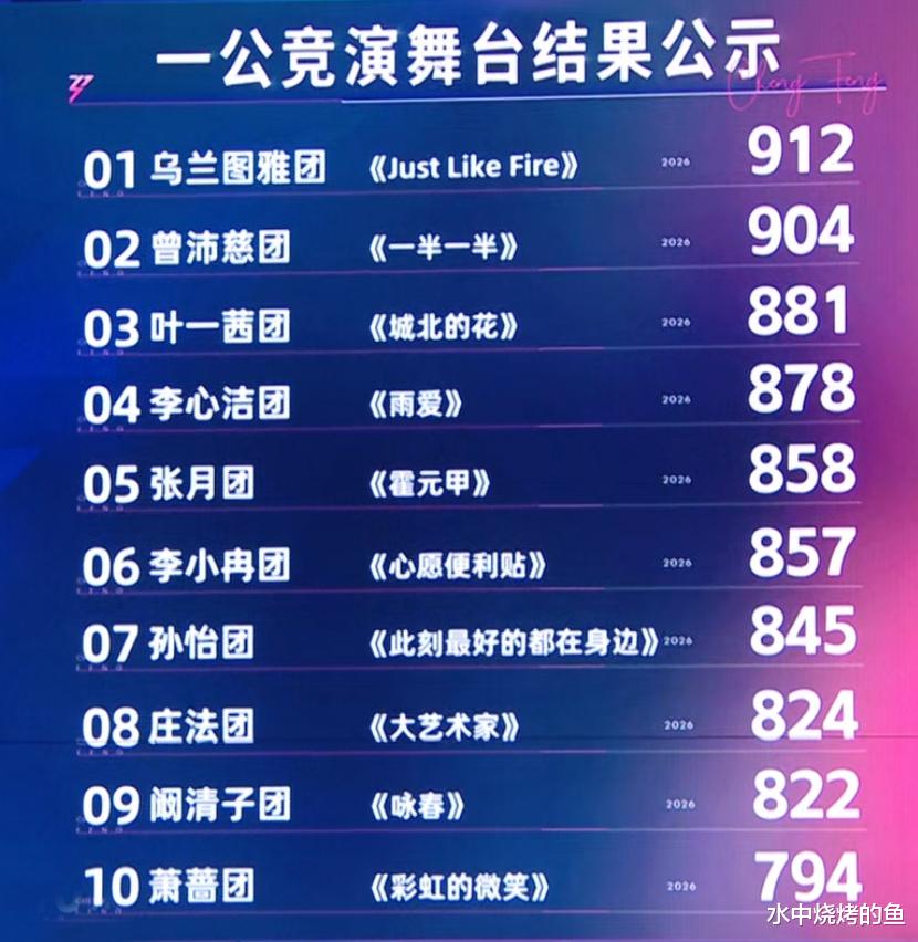 《浪姐7》一公结果大家都知道了,乌兰图雅团912票排名第一,曾沛慈团904票紧随其后,萧蔷团794票排名垫底。