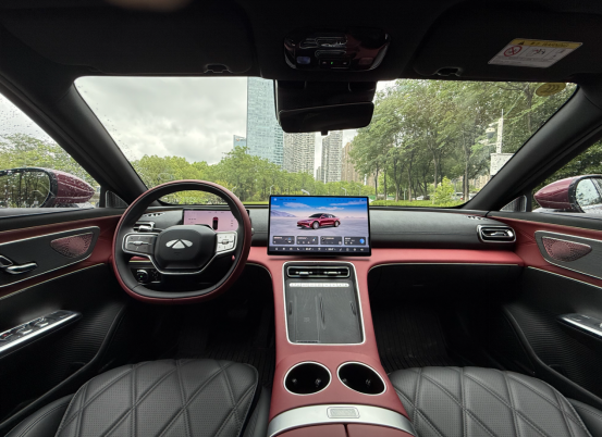 搭载鲲鹏超能电混CDM6.0系统,风云A9L在能效与动力之间找到完美平衡。1.5T发动机热效率高达45.79%,搭配无级超级电混DHT Pro,传动效率达98.5%,在整个试驾的过程中,无论是正常加速,还是变道超车,风云A9L的表现还是不错的,能够做到轻松响应,动力随叫随到。