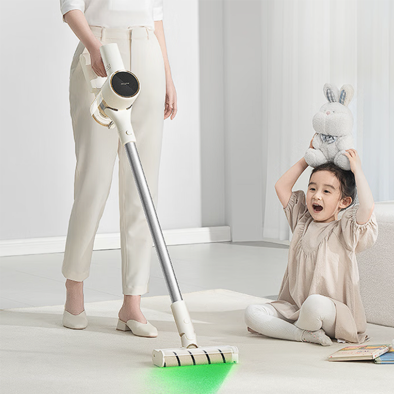 推荐理由:京造V1整体外观造型是采用纯白色搭配银色吸管,主打就是时尚简约风,而且机器还前置了绿光显尘灯,可以轻松照射到各个地方的灰尘。而且机器还配有H13HEPA过滤,可以过滤粉尘,打扫再也不用担心粉尘乱飞了。