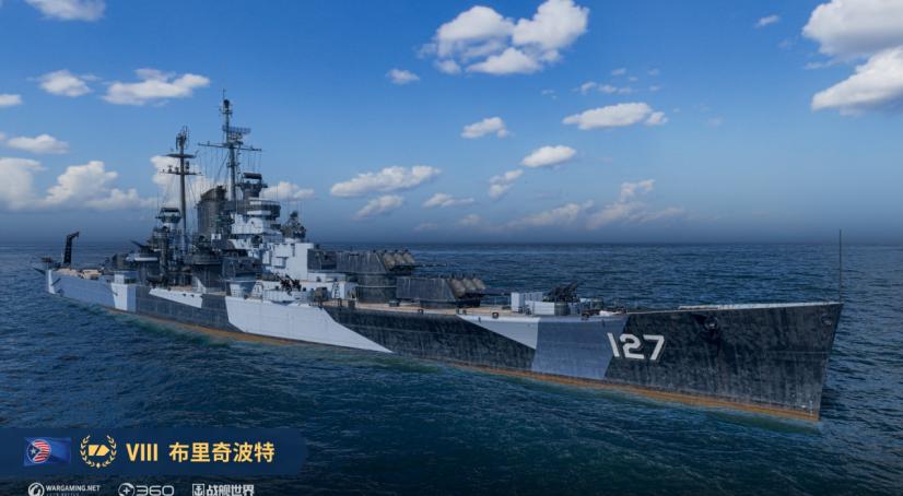 当所有设施的等级都提升到最高以后,玩家即可白嫖一艘八斤重巡布里奇波特。这艘重巡很有意思,它的模型是一艘原装的俄勒冈城级重巡洋舰,相当还原。