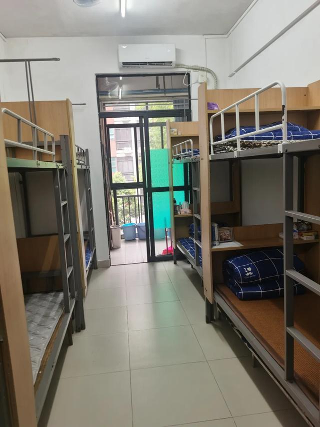 宿舍八人间,上下铺,不算宽,一厕一洗澡房,宿舍楼下有洗衣房。