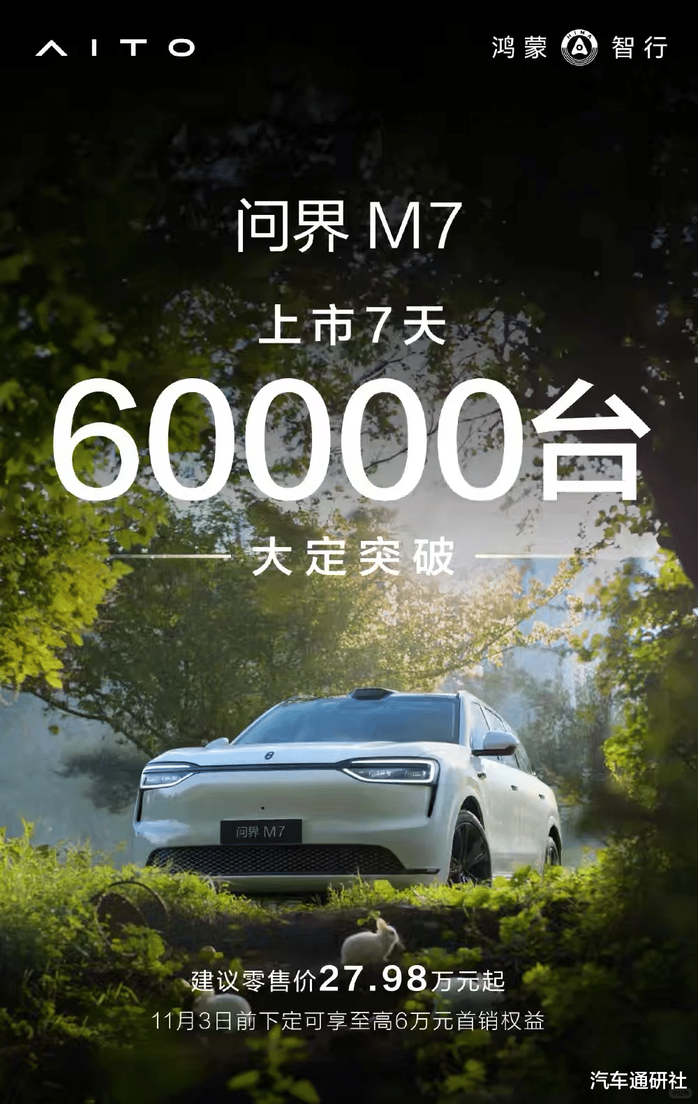 眼下,汽车市场正处于传统“金九银十”消费旺季,随着70余款新车进入市场,车市消费迎来新一轮的爆发期。“幸福旗舰”全新问界M7作为近期的重磅车型,凭借焕然一新的形象和配置,不仅在7天内收获6万台大定订单,还火速开启全国规模交付,缔造出国民SUV的“新传奇”。