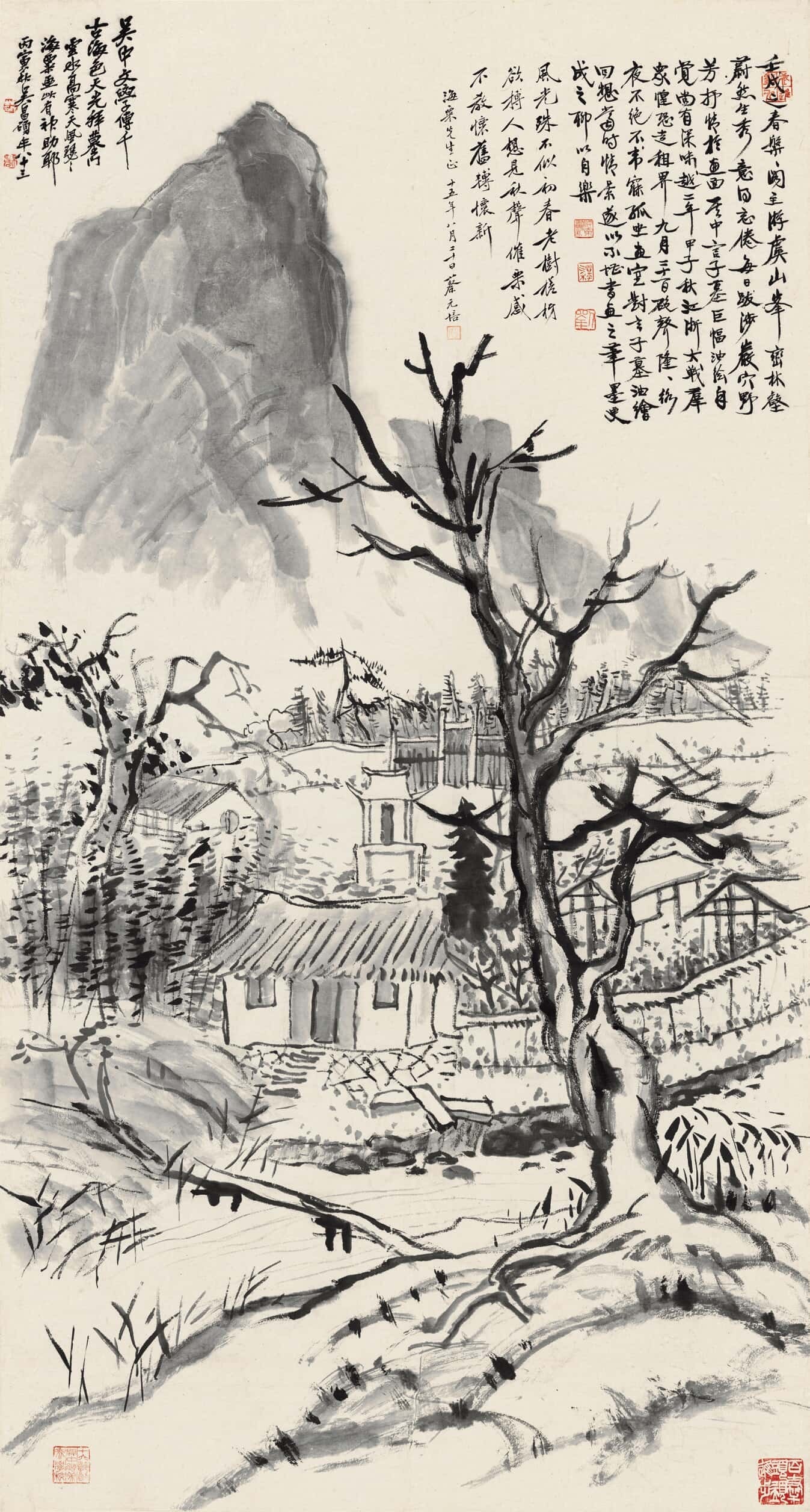 刘海粟《言子墓图》,纸本设色,长149.6厘米,宽79.7厘米,1924 年作。这幅作品现被公认为刘海粟的代表作之一。