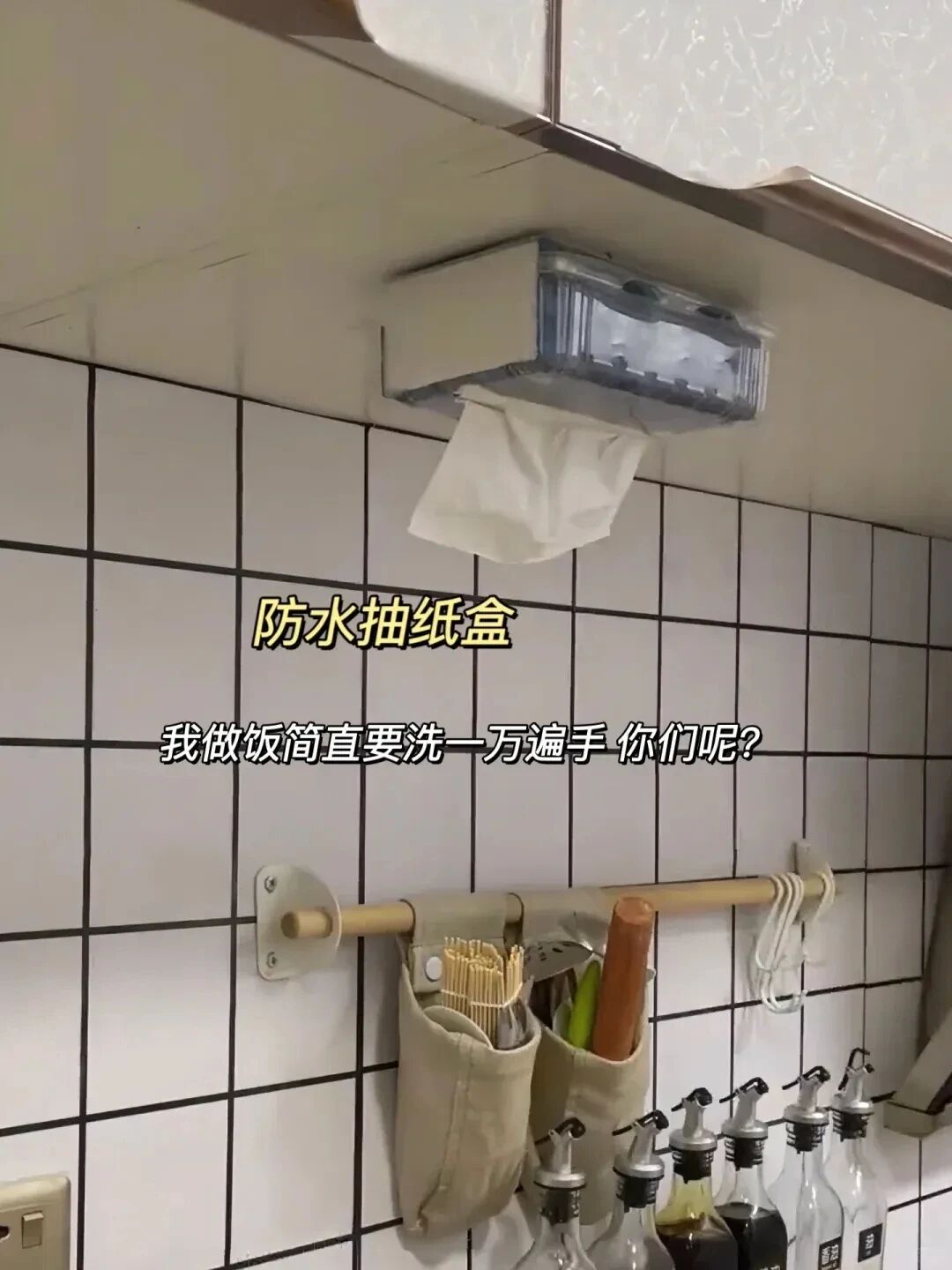 我们在做饭的时候需要频繁洗手,也会用到纸巾。但是对于小户型的厨房来说,在台面上放一包纸巾也很占地方,