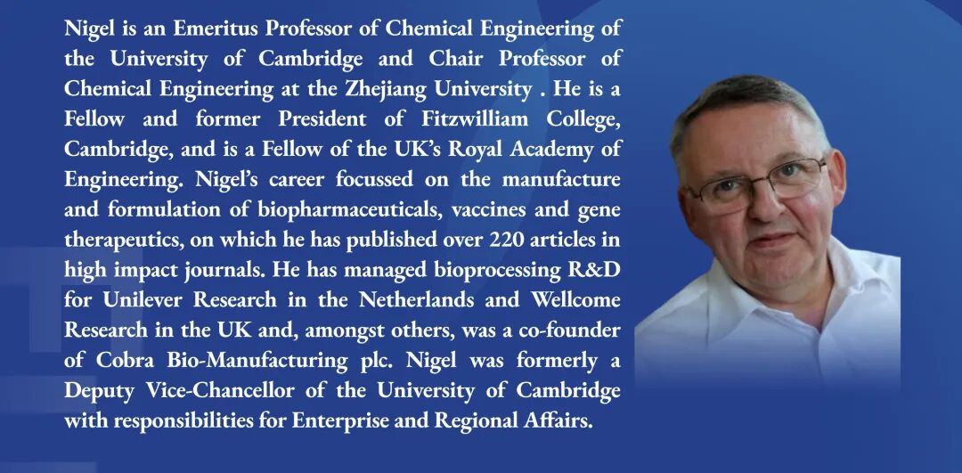 此次全职加盟的斯莱特教授,堪称生物制药与化学工程领域的国际领军者,其学术与职业履历兼具深度与广度。他与剑桥大学的羁绊始于1972年,在悉尼·苏塞克斯学院先后拿下自然科学学士、博士学位,1978年入职菲茨威廉学院任化学研究员,次年便跻身化学工程助理讲师行列,开启学术执教之路。1985年,他暂别高校,投身产业一线历练:先于荷兰联合利华研究实验室主导生物加工部门工作,后于1990年加入威康生物技术公司,牵头美国罗德岛干扰素制造工厂工艺设计,还推动了Campath-1H抗体的工艺开发,实现学术理论与产业实践的深度融合。