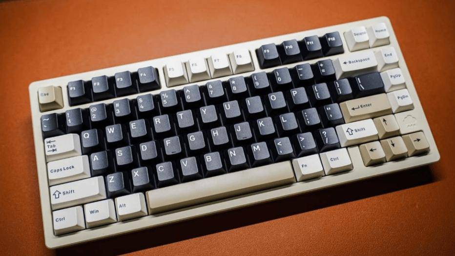 作为挑战客制化的量产款,Rainy75的色彩选择非常多,但买到啥基本看脸,而奶酪白作为热门配色,只能说我人品爆发。虽然很多老烧都会更换键帽,但其实自带的这套黑白米主题双色PBT键帽品质还不错,抗油抗指纹能力很好,手感也比较舒适,不更换也能用得挺爽。