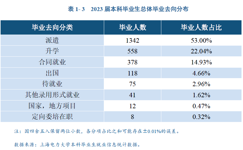 上海电力大学2023年毕业的本科生总人数为2532人,其中男生有1738人,本科生的就业率为97.04%。国内升学人数有558人,出国出境留学深造人数有118人,2023年毕业的本科生中,选择继续读研的人数总共有676人,占本科生总人数的比例约为26.67%。