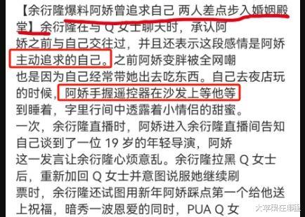在Q女士的爆料中,余衍隆似乎并不是一个完全无辜的受害者,反而在这段感情中也有着复杂的角色。