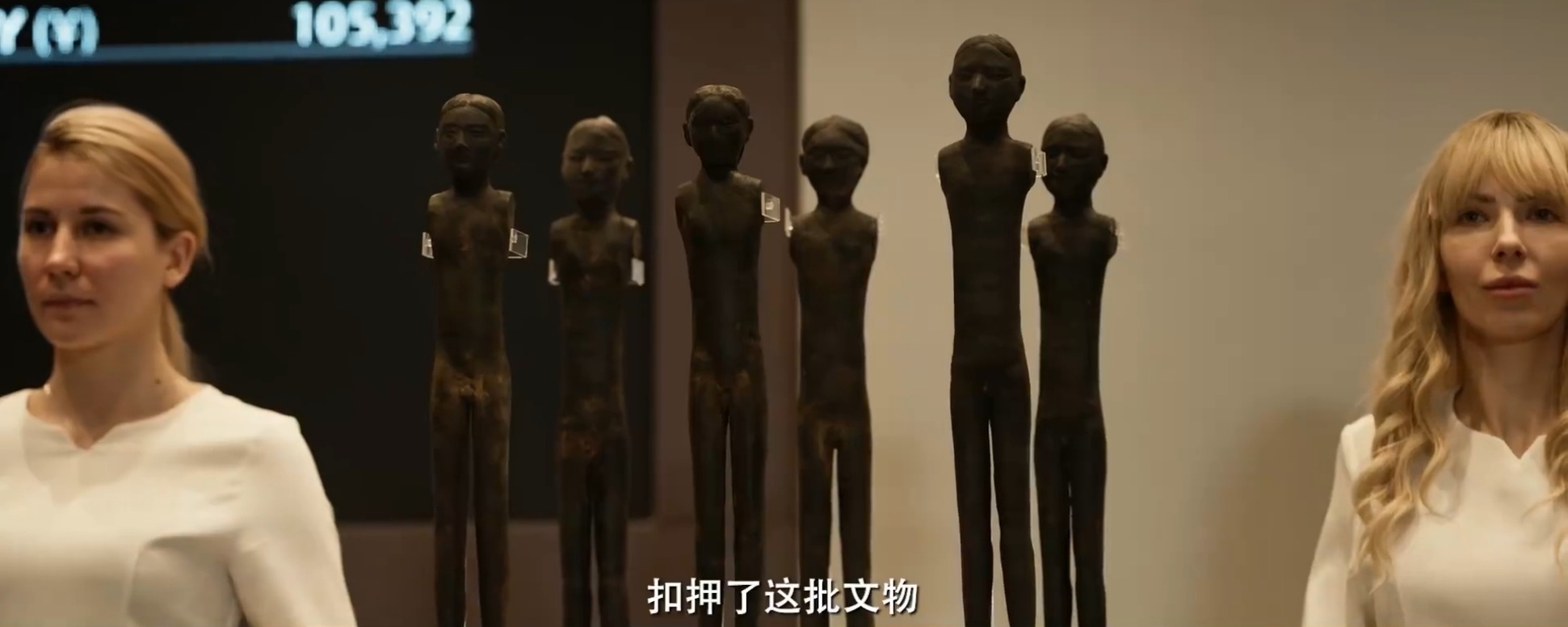 镜头一转,国外拍卖会上就出现了我国不少文物。六件黑陶俑,就是不久前才从尹村流失的宝贝。见此情况,国家文物单位正在极力组织,希望太能把这些非法流失的文物归还中国。