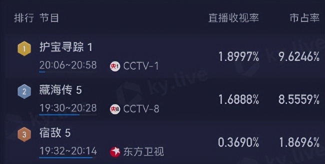 前2天收视率最高的一直是《藏海传》,《护宝寻踪》开播,收视率迅速赶超《藏海传》,轻松拿下全国收视率第1的宝座。