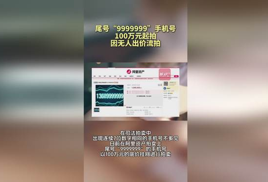 2025年9月下旬,司法拍卖平台密集出现高价值手机号挂牌:其一为深圳市尾号“9999999”(7个9)的联通手机号,由中国拍卖行业法拍公司组织商业拍卖,起拍价100万元,历经91次加价后以100万元成交(套餐199元/月,6个月后可调资费);其二为郑州市尾号“66666666”(8个6)的移动手机号,由郑州高新技术产业开发区人民法院于阿里资产平台进行司法拍卖,起拍价200万元、保证金40万元、增价幅度1万元,截至10月1日已吸引1.4万人次围观,但暂无人报名。