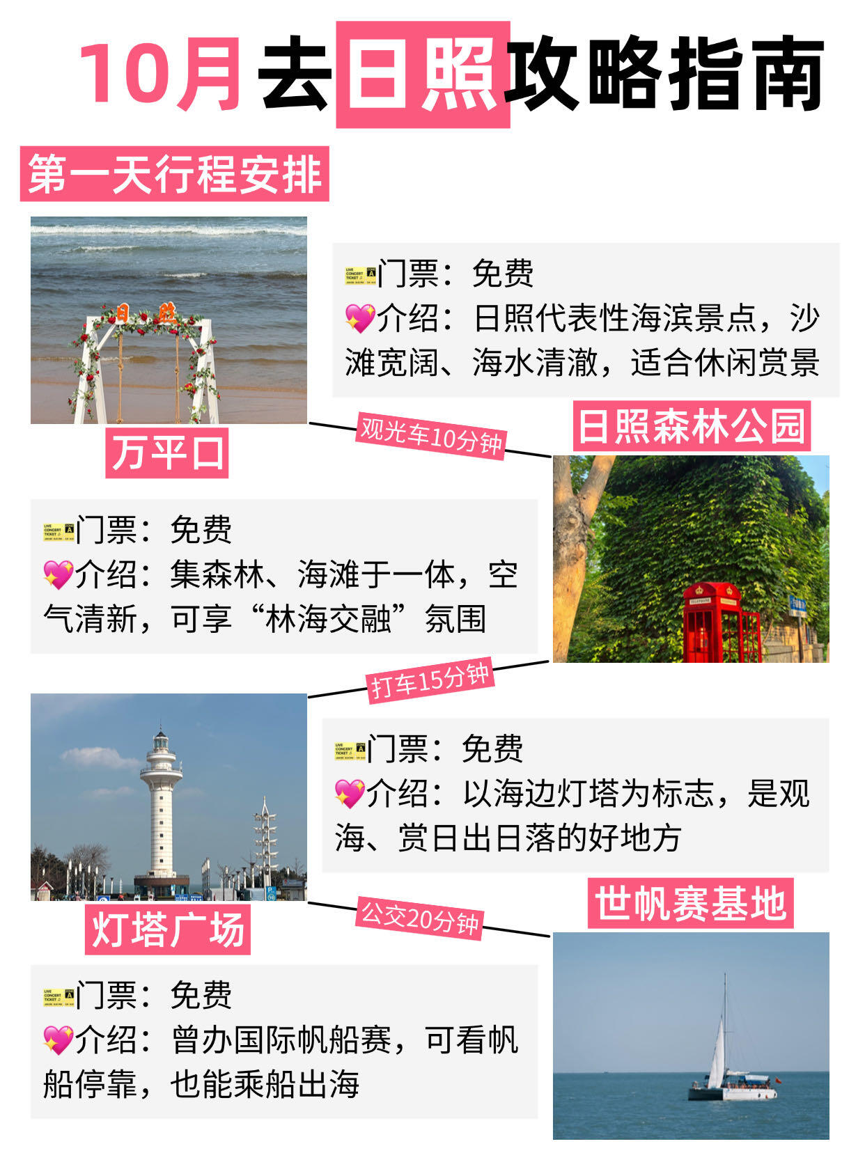 1️⃣第一天行程安排:万平口海滨风景区→日照海滨国家森林公园→灯塔风景区→世帆赛基地