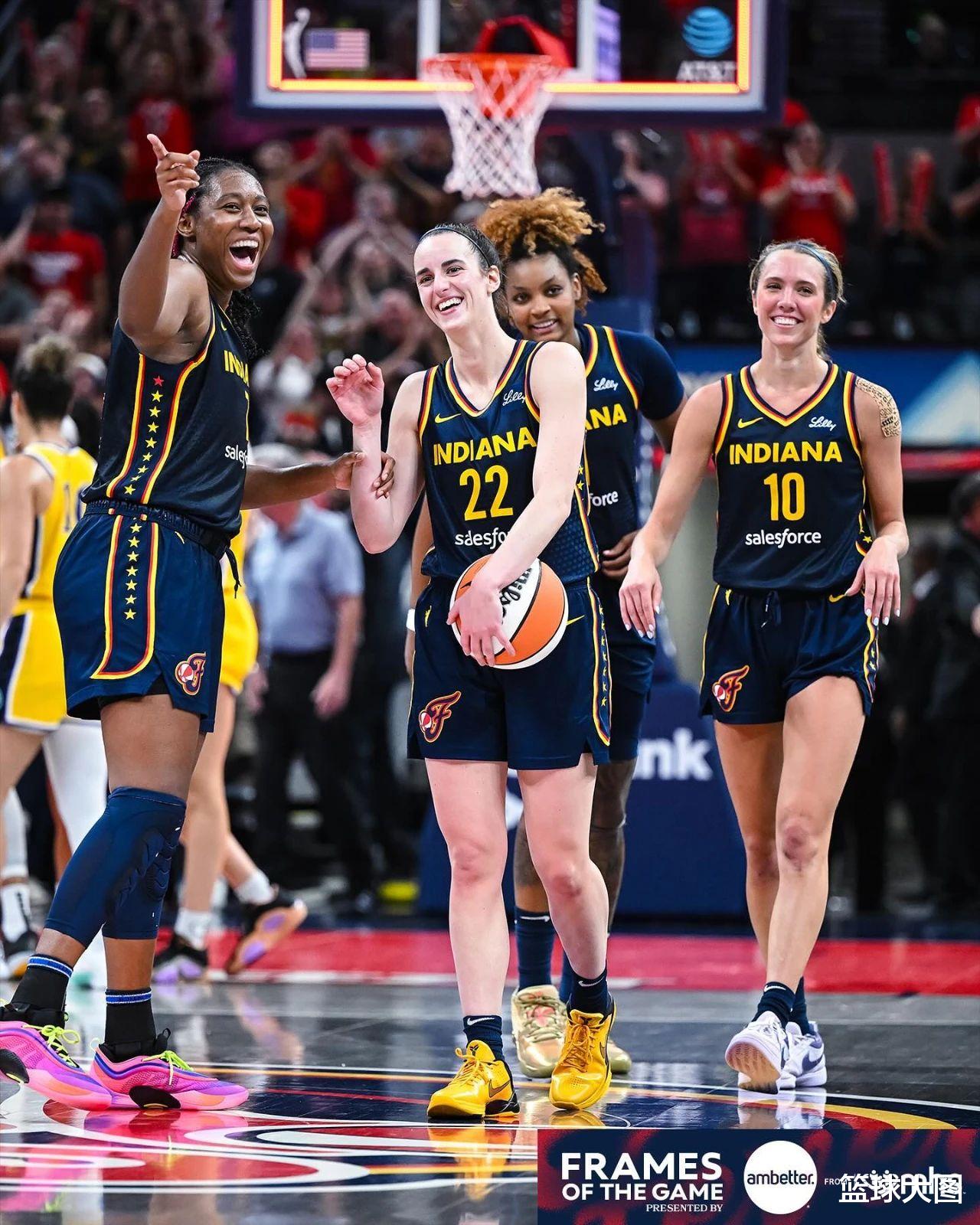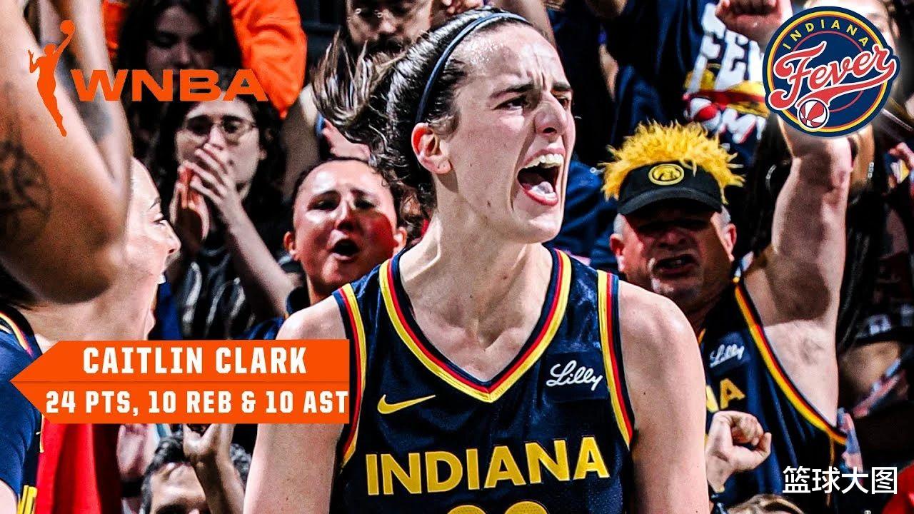 没过一会,在93-86击败火花的比赛中,克拉克就砍下24分10板10助,拿到了个人新秀赛季的第二次三双,并列本赛季最多。而要知道在她之前没有任何一个wnba新秀拿到过三双数据。
