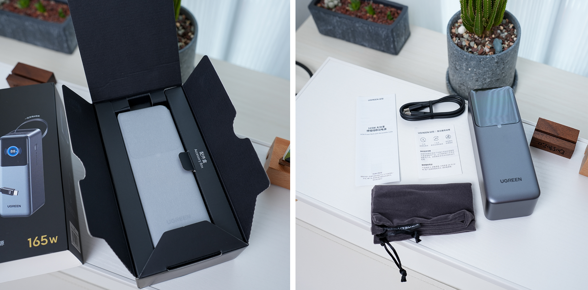 总输出功率达到了165W,C1、C2同时充电输出功率为100W+65W,这意味着它可以同时给两台轻薄本供电,还能保持比较高的输出功率,2W毫安容量也能保证更长的续航时间,笔记本能充满1次,单独给手机也基本能够充3-4次,这点在目前充电宝里还是不多见的,对于经常出差的朋友非常友好,有时候外出移动办公,笔记本电量低,身边又没有固定电源,这时候一款大功率+大容量的充电宝可以帮你解决这一困境。