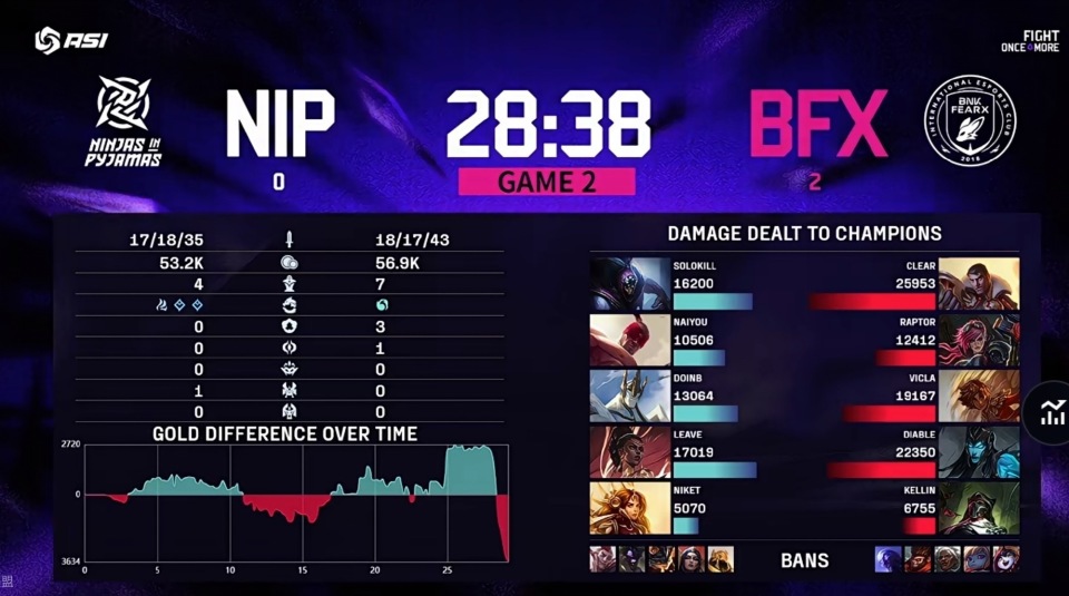 而在另外一场小组赛当中,来自LPL赛区的七号种子NIP对阵LCK赛区的六号种子,也遭到了对手的纯虐,最终被2-0零封!从两队阵容上来看,其实都是一些新人面孔,相当于是黎明阵容的对决,而NIP这边有一个老兵Doinb领衔,但根本不够打的!在第一局当中,NIP在关键团拿下火龙魂,并且赢下了BFX带着大龙Buff的推进!只可惜在后面的决策上,能够看到LCK的队伍找机会更果断,对局势的判断也都算到了点上!如今ASI赛事里,LPL和LCK初次相遇,都被零封了,还是熟悉的剧情!不知道在世界赛当中,LPL再碰到LCK,会不会还是这样,我们拭目以待吧!