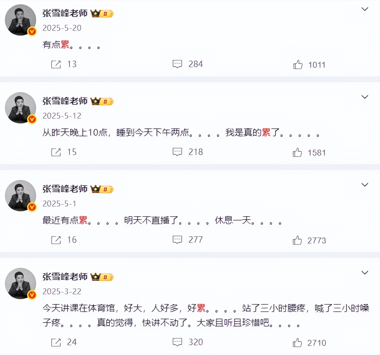 因为在大多数人眼里,张雪峰一直都是“特别能扛”的那种人——爱运动、长期健身、工作能力强、精力充沛、事业做得风生水起,怎么看都不像会突然倒下的人。