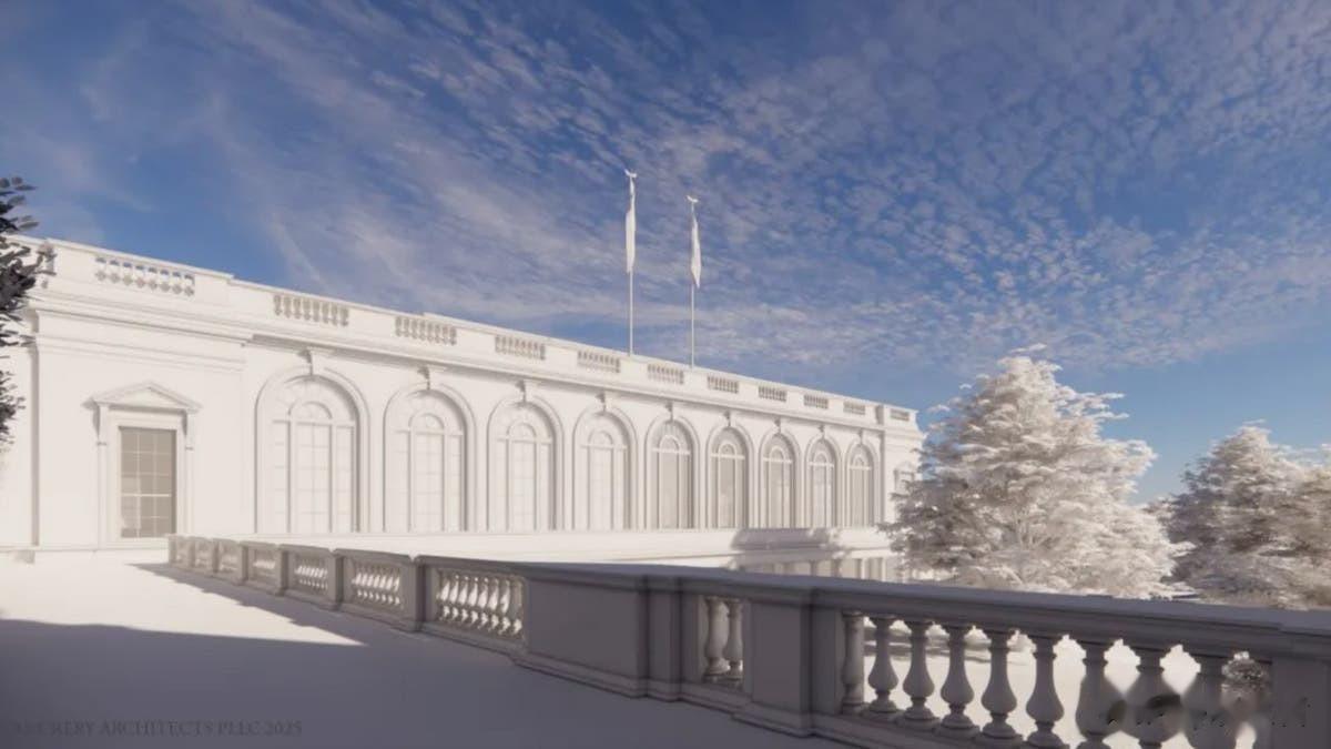 白宫提供的麦克雷里建筑事务所(McCrery Architects)新宴会厅外观效果图。