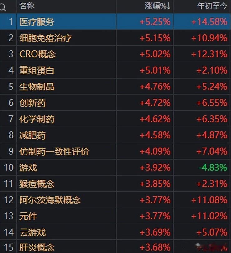 创新药板块持续走强医药板块延续近期强势,尤其创新药细分领域表现突出。