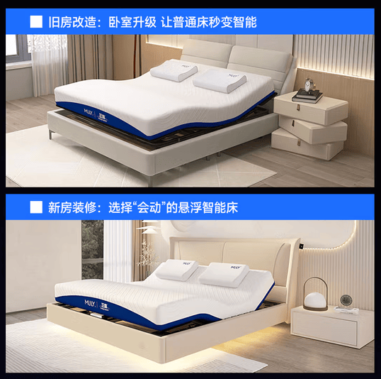 0压床垫材质特别舒服,能贴合身体曲线,缓解腰背压力,老人睡久了也不腰酸。“智能减鼾”功能很实用,监测到打鼾时会自动调节床头角度,帮助打开气道,提高睡眠质量。支持语音控制,说“打开床头灯”“调整睡姿”就能响应,老人操作很方便。