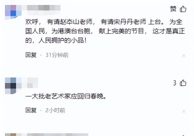 网友评论:春晚确实到了该变革的时候了,以前的辉煌不能代表永远。主题和创新点听起来不错,希望能真正落实。新老艺术家和偶像联手很期待,能吸引不同年龄段观众。不过对于赵本山和宋丹丹回归,确实有点担心跟不上现在观众的笑点了。新媒体互动是个好方向,能让我们更有参与感。春晚作为文化符号意义重大,希望它既能传承经典,又能大胆创新,别再让大家失望,重新成为除夕夜的焦点,让全球华人都能再次为它骄傲自豪。