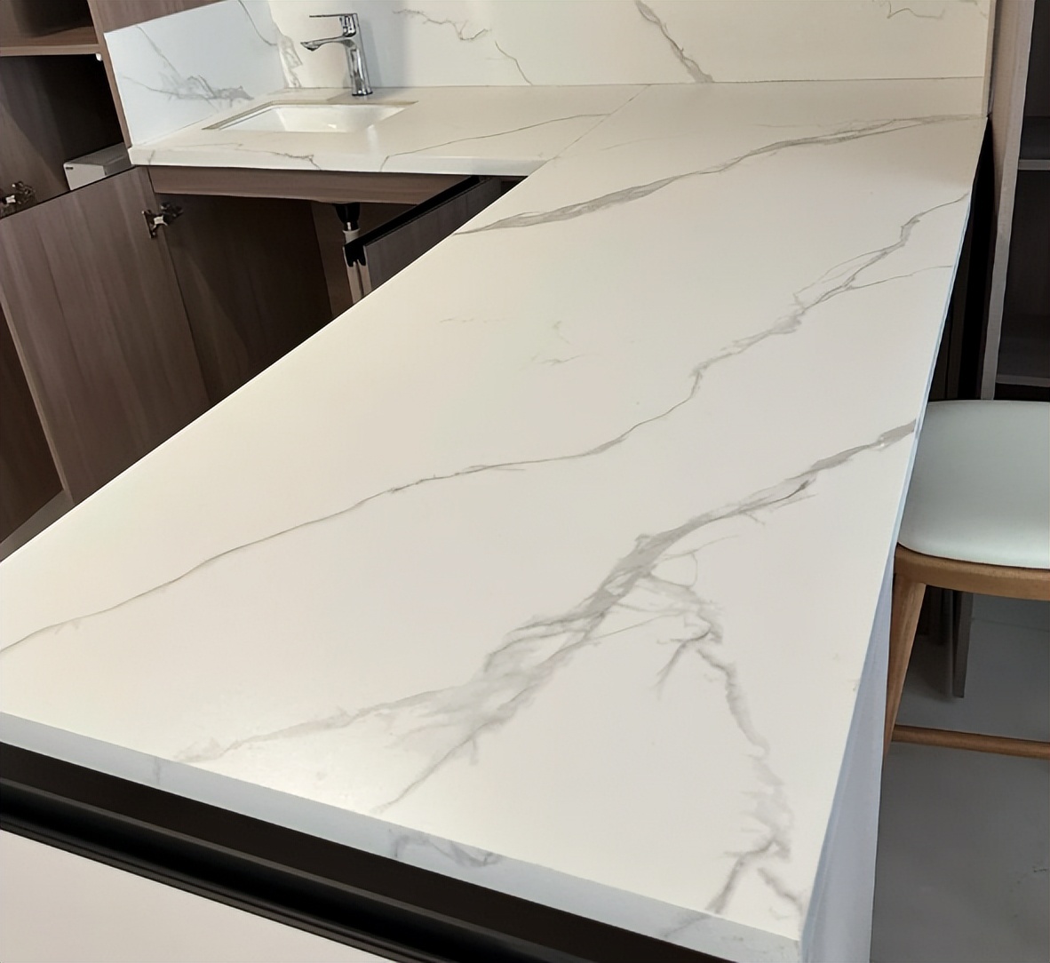 等到你入住了后发现,这些假货耐用性很差,有的人都说用着用着岩板都已经变色了。