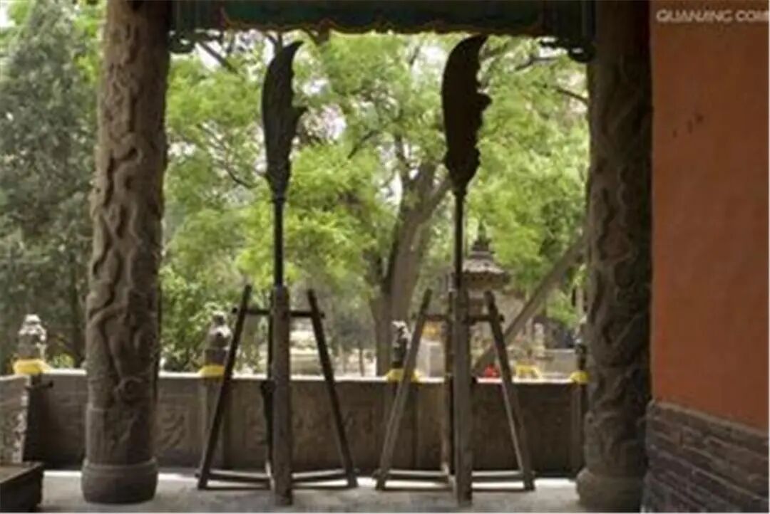恰好,关帝圣君殿西侧摆放着一把仿制的关公“青龙偃月刀”。两者相互呼应,这棵树也因此被赋予了“关公刀树”的美名。