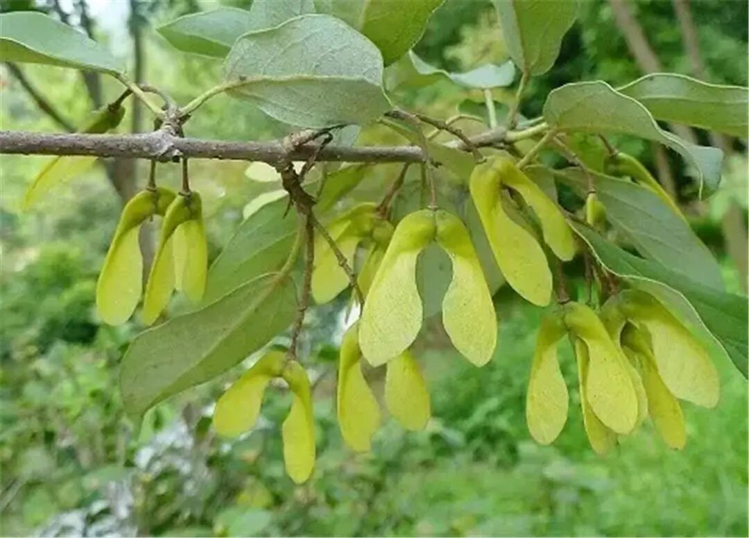 元宝槭:又称元宝枫,枝叶茂密,叶片轻盈秀丽。它的叶子为单叶对生,呈掌状5裂,每到秋天,叶片会变成鲜艳的红色,格外抢眼。它的翅果扁平,翅宽且略长于果核,形状酷似元宝,“元宝槭”的名字也由此而来。