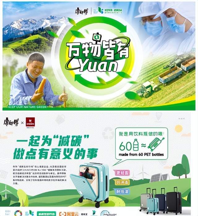 在这一理念指引下,康师傅的ESG实践清晰地呈现出一条从“食”出发,逐步覆盖“衣住行”的路径图。2022年,携手联合国全球契约组织发起“缓解海洋塑料污染,助力低碳经济转型”活动,从“减塑” 切入探索循环模式;2023年,“rPET造万物”将回收饮料瓶重塑为拉杆箱、野餐垫等产品,为“行”注入绿色温度;2024年,“万物皆有yuan”项目溯源而上,深耕绿色农业,筑牢“食”的生态本源。此次跨界 “衣” 的领域,是其构建"衣食住行"可持续生活圈的关键一步,标志着循环经济版图的进一步完善。