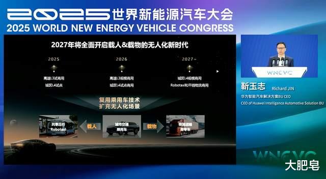 在技术发展路径上,靳玉志介绍了华为乾崑的阶段性规划。2025年,ADS 4系统首发面向L3技术架构的高速商用解决方案,具备高速L3试点商用能力及城区L4测试能力;2026年,在法规允许前提下,力争实现高速L3规模商用及城区L4商用试点;2027年,随着高速与城区NCA功能普及,L3将实现规模放量,城区L4进入商用阶段,Robotaxi与干线物流逐步落地,全面开启载人&载物的无人化新时代。
