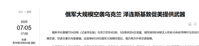新华每日电讯——俄军大规模空袭乌克兰 泽连斯基敦促美提供武器——2025-07-05