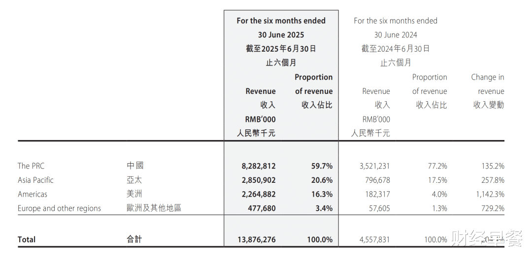 今年上半年,美洲市场营收的占比排在中国、亚太之后位列第三,达到16.3%,但其同比增速却达到令人瞠目结舌的1142%,去年同期的占比仅仅是4%。