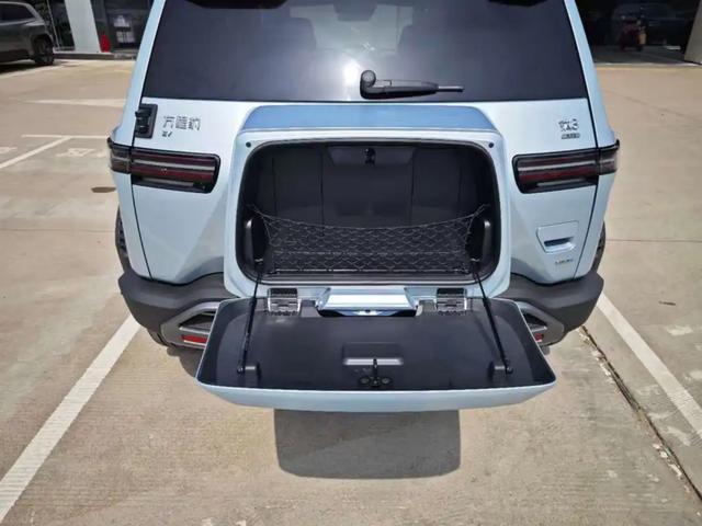 尾门还有一个背包式储物空间,可以放一些常用小件物品,比如玻璃水、备用雨刮器、充气泵、折叠雨伞等等,拿取也是比较方便的。