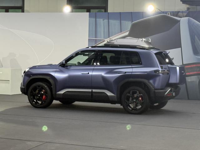 外观造型,与大部分纯电动车不一样,融入了“星际战车”元素,看上去比较特别,车身底部用宽厚的防刮蹭条环绕一周,又配备了力量感十足的凸起筋线,看着漂亮。