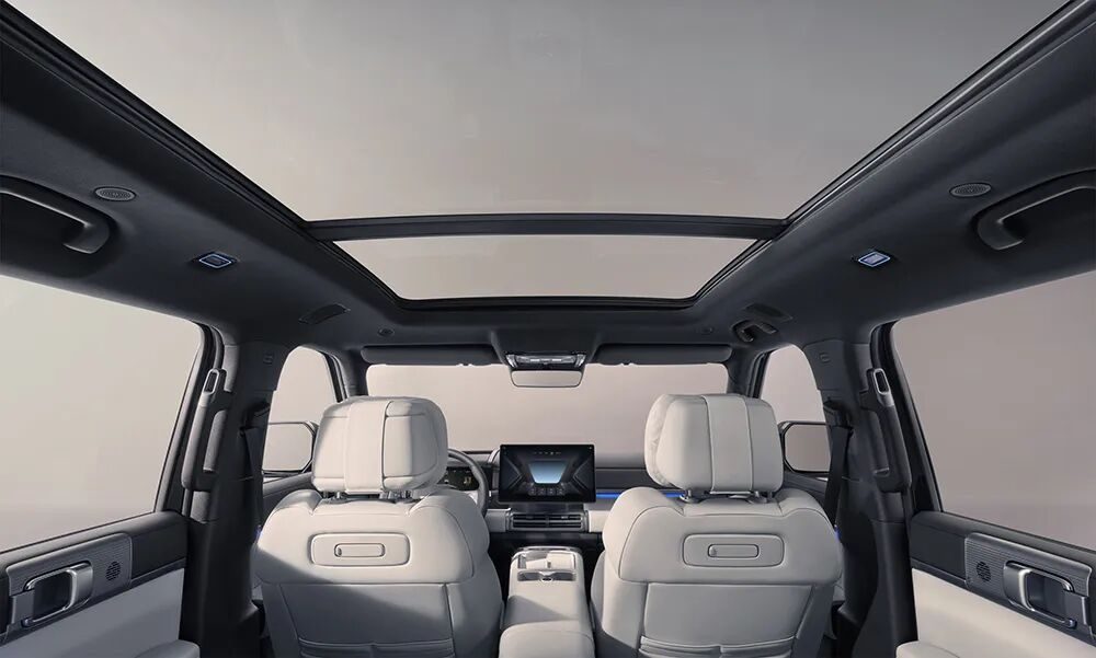 外观上,钛7近5米车长,近2米车宽,方正宽大有型又霸气;在车内,更是为用户营造了一个五向通透的无限风景视界;钛7不仅有同级领先的70.9%超高得房率、还有超过3.3m的乘员舱有效车长,身高1米9的驾乘者坐在车内都能挺直腰背。