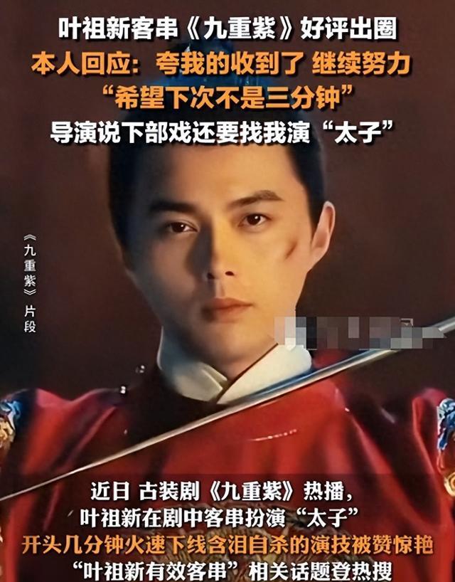 根据各大新闻报道,“叶祖新在《九重紫》里有效客串,凭一己之力拉升整剧质感”,等相关话题冲上热搜。