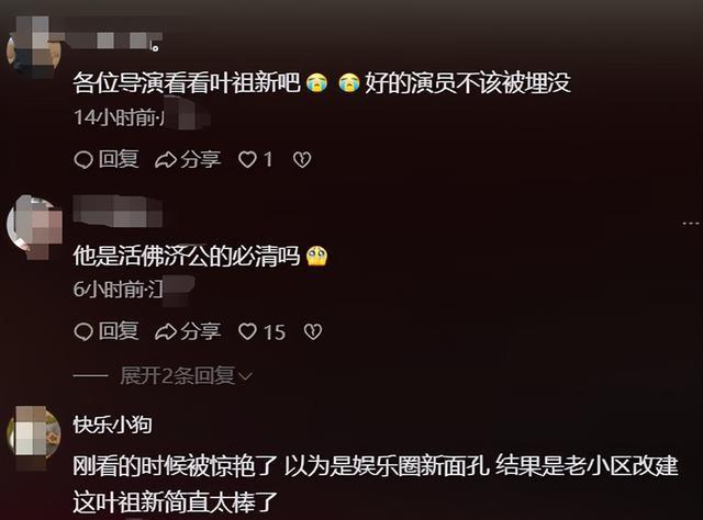 为了仿止娱乐圈人才丢失,网友们纷纷在帮忙举荐叶祖新。