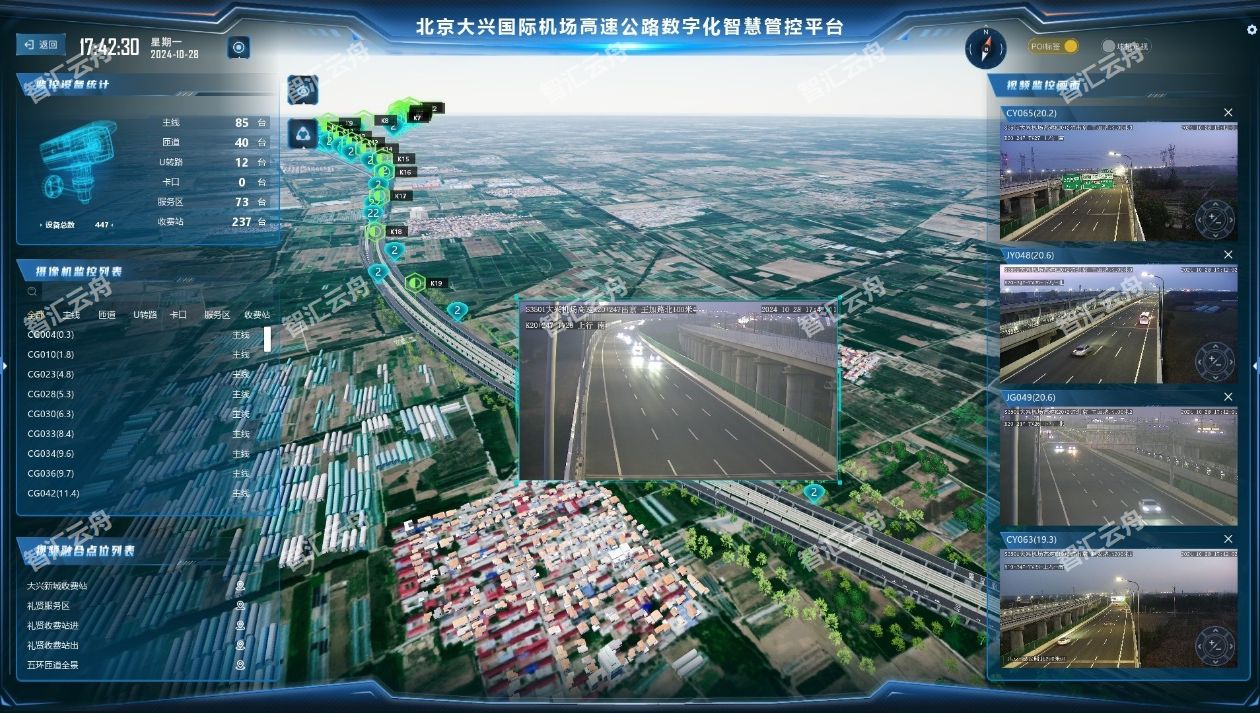 北京大兴国际机场高速公路智慧管控平台:通过融合500余路实时监控视频、物联网传感数据及AI算法,构建覆盖27公里道路的“感知-建模-仿真-决策-控制”全链条平台。实现拥堵预警、设施故障诊断、突发事件处置的闭环管理,应急响应效率提升40%,事故定位时间缩短至秒级。