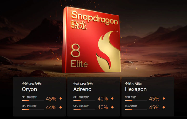 三款新机都搭载了骁龙8至尊版,根据公开信息显示,该处理器CPU提升了45%,功耗降低了44%;GPU性能提升了40%,功耗降低了40% ;NPU性能提升了45%。目前这块芯片的性能超过了苹果A18 pro的天玑9400,可以说是目前最强的手机芯片。同时,三款机型都配备的是UFS4.0运存,不同的是,一加13和真我GT7 Pro配备的是LPDDR5X闪存,iQOO13配备的是速度更快的LPDDR5X ultra闪存。