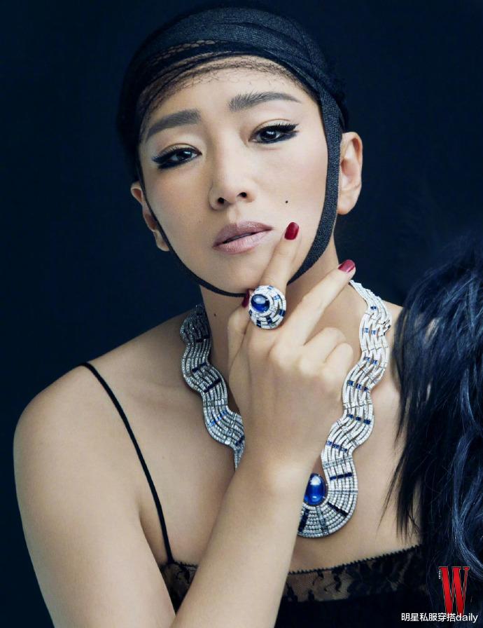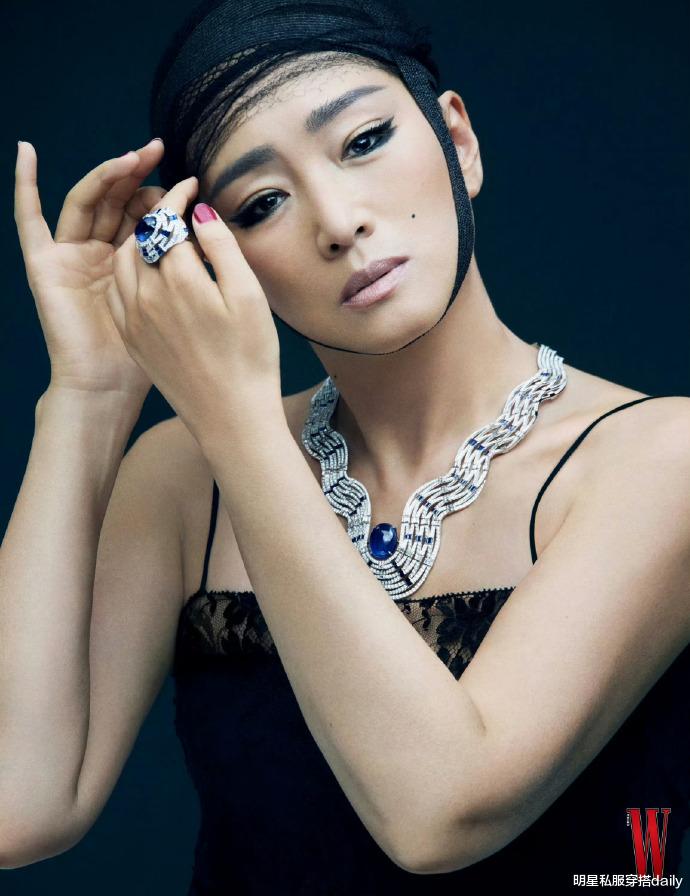 佩戴的蓝色和银色镶钻的珠宝项链和大戒指,也难掩巩俐的霸气的气场!尤其搭配了红色美甲之后,更显巩俐的“大女主”气场,不愧是被称为“巩皇”的国际巨星!
